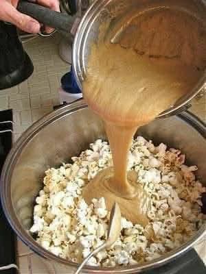 - Quickly pour the caramel over the popcorn and toss until well-coated.