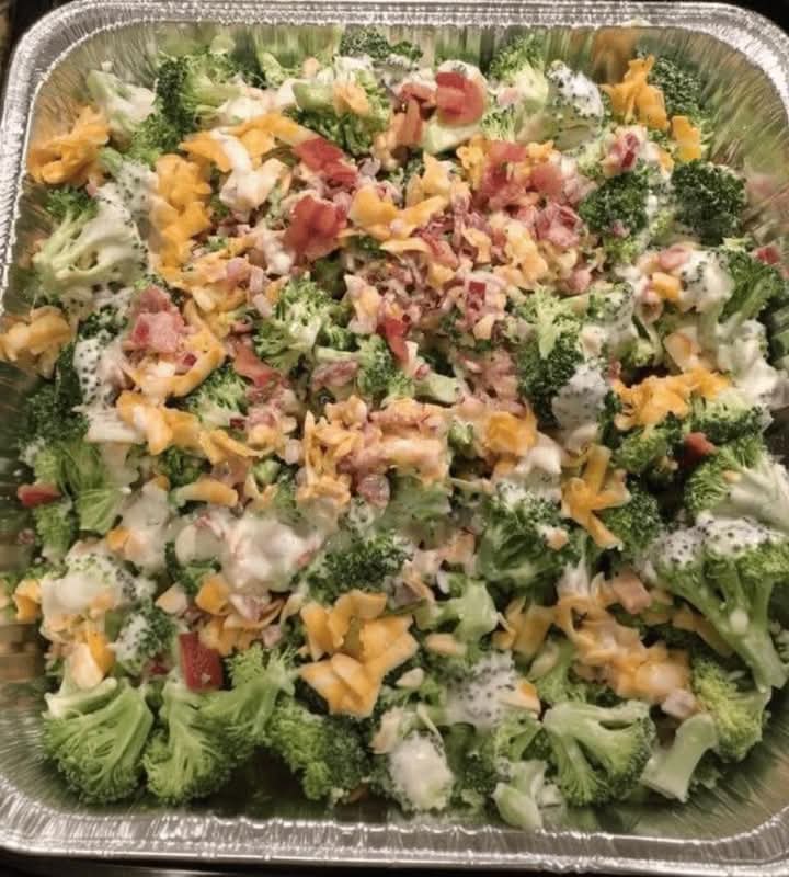 The combination of fresh broccoli, sharp cheddar cheese, smoky bacon, chewy dried cranberries, and crunchy sunflower seeds creates an irresistible balance. Toss everything in a smooth and tangy creamy coleslaw dressing, and you’ve got the ultimate crowd-pleasing salad.