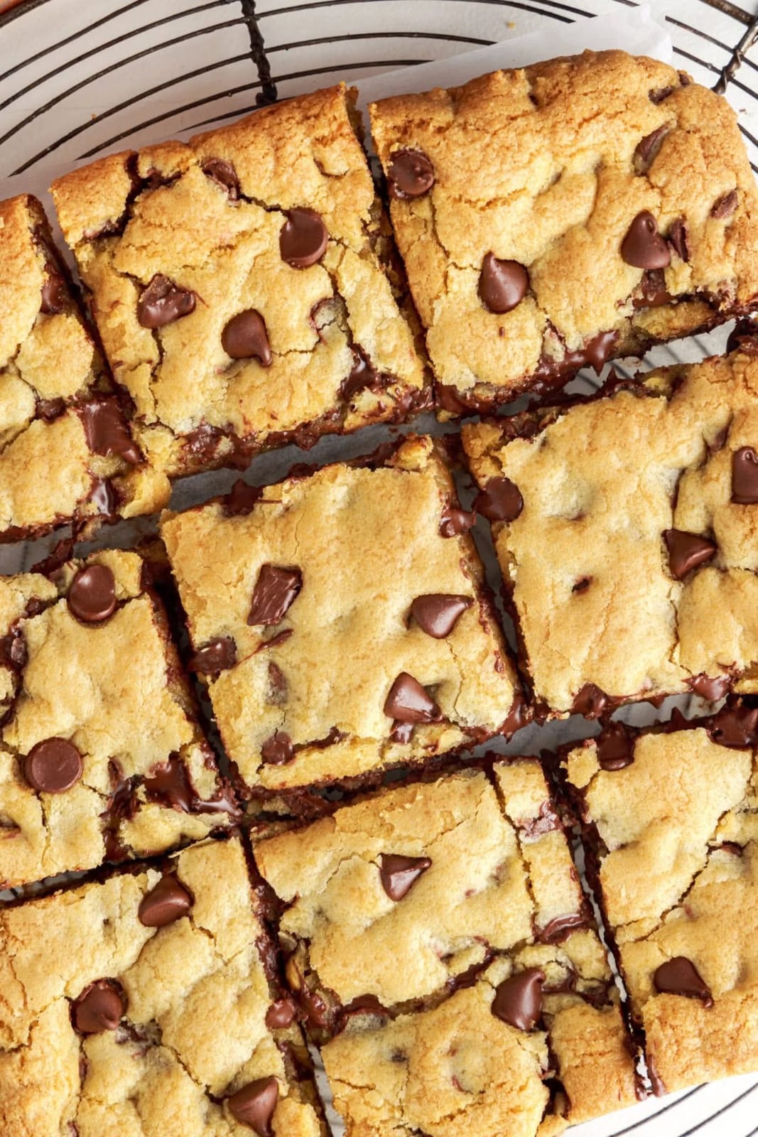 Store cookie bars in an airtight container at room temperature for up to 3 days, or refrigerate for up to 5 days. Reheat gently before serving if desired.